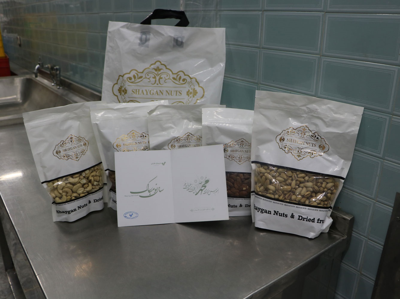اين بسته‌ی 3 كيلويی آجيل شامل: پسته، بادام درختی، بادام هندی،و … بوده و در روز چهارشنبه مورخ 22 اسفند 1397 در سطح كارخانه (و دفتر تهران) بين تمامی كاركنان توزيع شد.